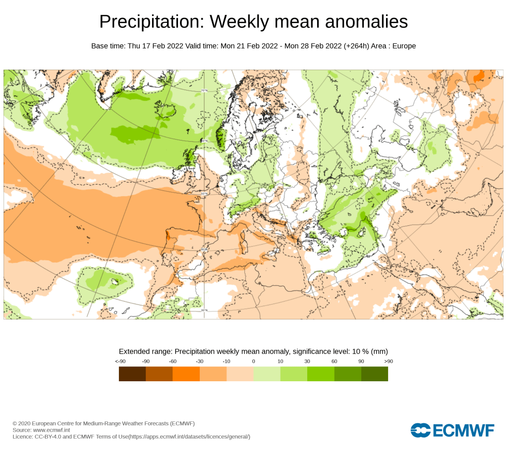 I hele landet vårt er det mellom 70 og 80 prosent sannsynlig at det blir varmere enn normalt, mens gjennomsnittet for våre breddegrader er 65 prosent. Dette er et uvanlig sterkt signal. Trolig henger det sammen med den sterke vestavinden i stratosfæren høyt over oss, noe som henger sammen med høy lavtrykksaktivitet inn fra Atlanteren. Mange lavtrykk inn fra vest = mildt og vått. Det ser ut til at dette fortsetter inn i mars måned.