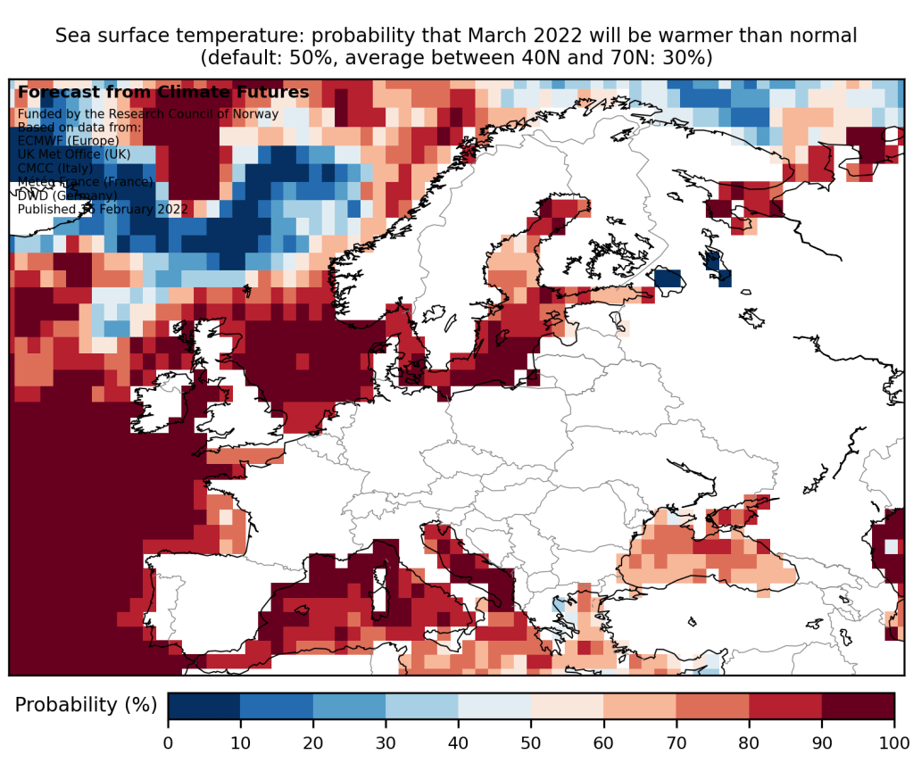 Denne gangen tar vi med et varsel for havtemperaturen, noe som er viktig blant annet for fiskeribransjen. Havet langs kysten vår er varmt for tiden, og det ser ut til å fortsette inn i mars måned: