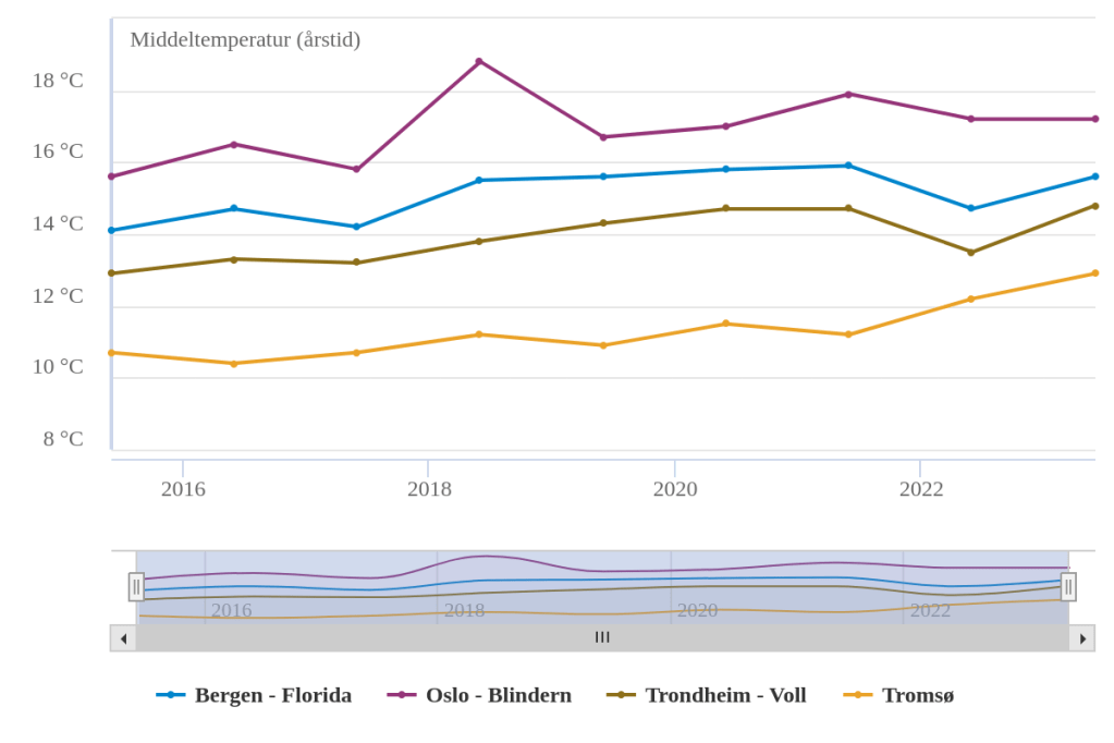 Den kaldeste vinteren i hele perioden – med god margin – var 2009/2010. Da hadde vi to oppvarminger. Vintrene 2019/20 og 2022/23 var særdeles milde og hadde ingen oppvarminger. Alt i alt er det et ganske tydelig, men ikke konsekvent, mønster: kalde vintre har som regel stratosfæriske oppvarminger, og vintre uten stratosfæriske oppvarminger er for det meste milde.